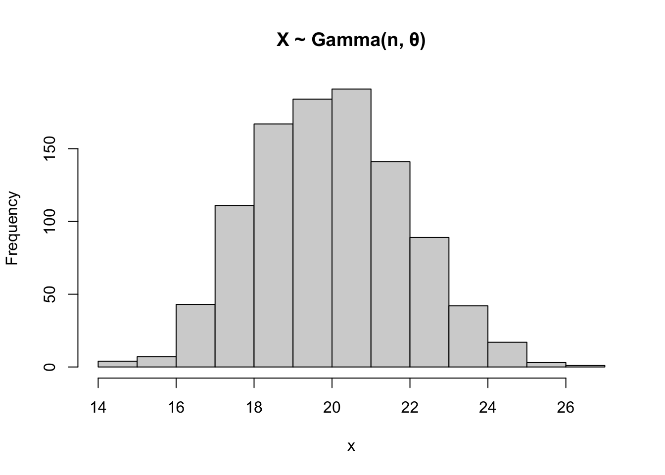 Ejemplo 7.3 Considere una muestra \(X_1, X_2, \dots, X_n \sim \mathrm{Exp}(\theta)\). De acuerdo a los ejemplos de capítulos pasados, el estimador de máxima verosimilitud de \(\theta\) es \(\frac{1}{\bar{X}_n}\)