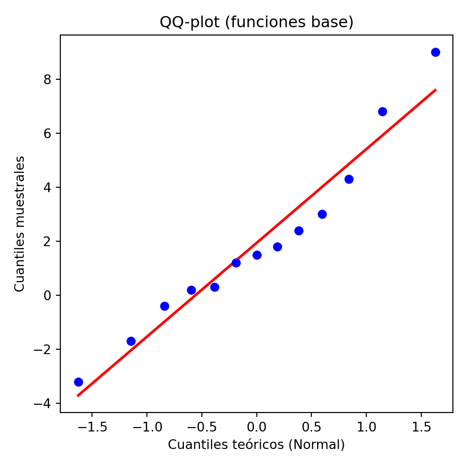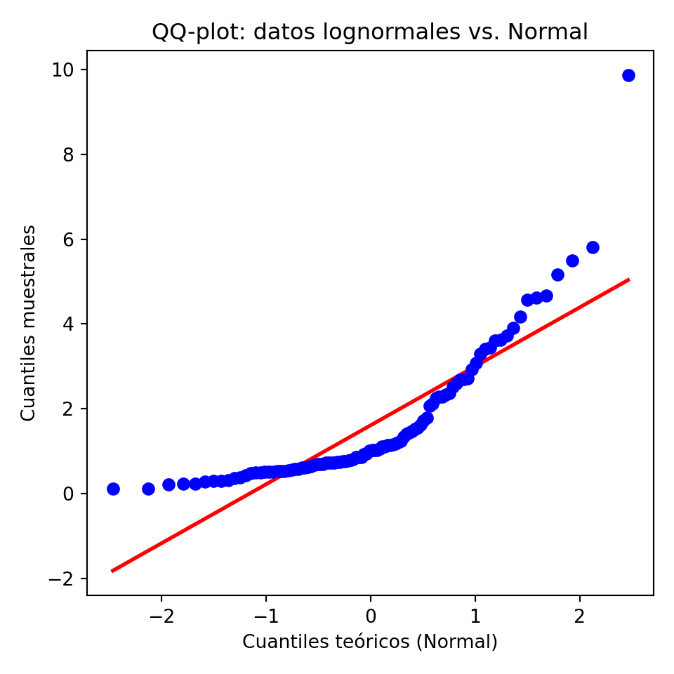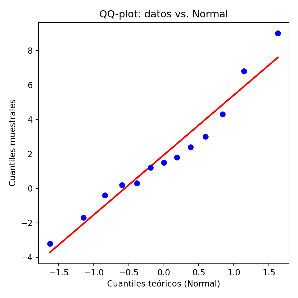 | QQ-plot | Cuantiles muestrales vs. teóricos — alineación = buen ajuste | geom_qq() + geom_qq_line() |