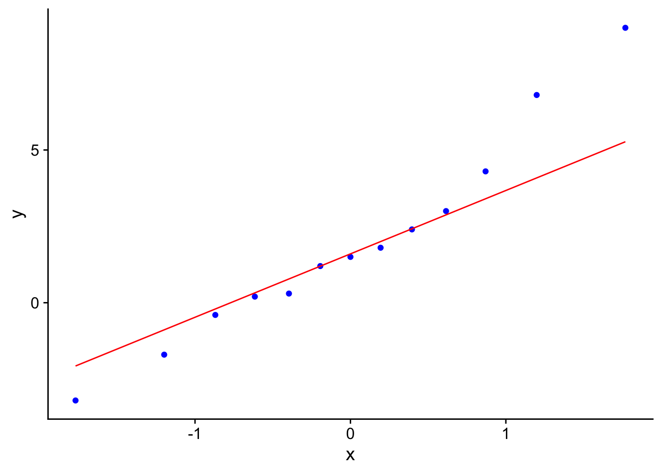 | Correlación \(\hat{\rho}\) | \(\frac{\sum(x_i-\bar{x})(y_i-\bar{y})}{\sqrt{\sum(x_i-\bar{x})^2\sum(y_i-\bar{y})^2}} \in [-1,1]\) | cor() |