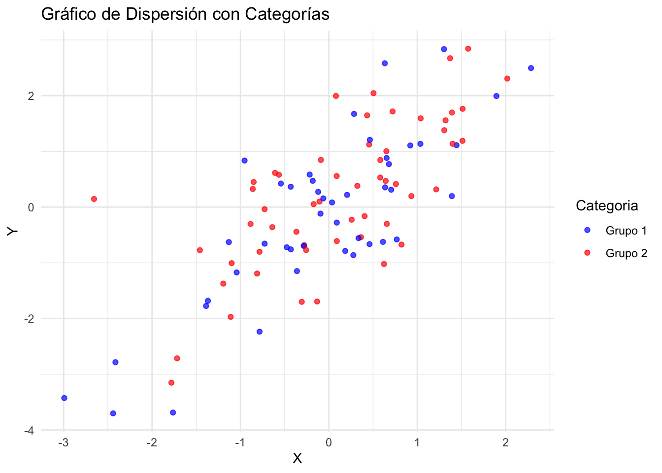ggplot(datos, aes(x = X, y = Y, color = Categoria)) +