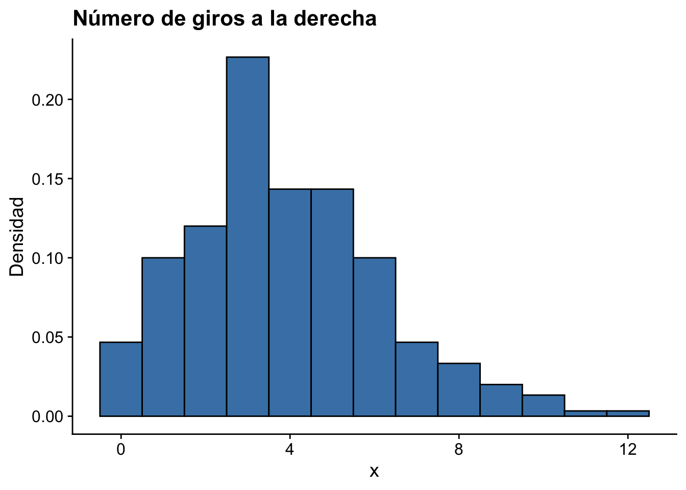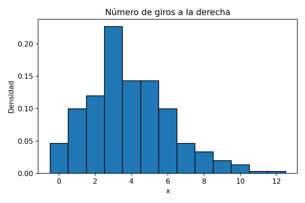 labs(title = "Número de giros a la derecha", x = "x", y = "Densidad") +