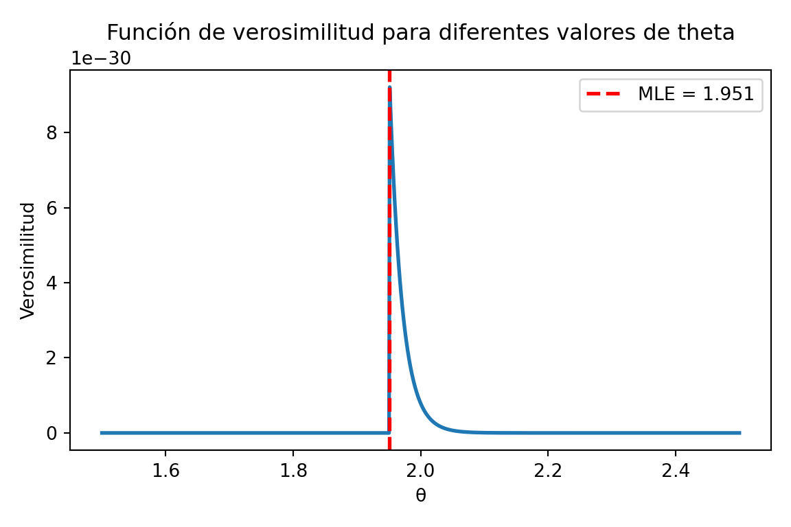 Cuando observamos datos, queremos encontrar el valor del parámetro \(\theta\) que hace que esos datos sean lo más “plausibles” posible. La función de verosimilitud cuantifica exactamente esa plausibilidad: dado un parámetro candidato \(\theta\), ¿qué tan probable habría sido observar nuestra muestra? El MLE elige el \(\theta\) que maximiza esa probabilidad.