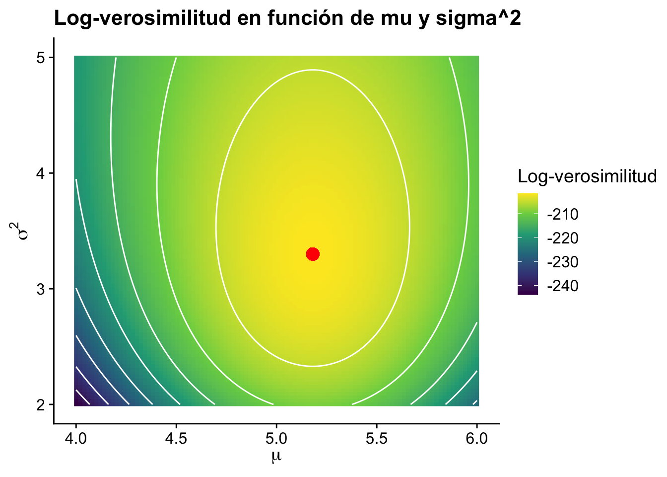 title = "Log-verosimilitud con la media de x",