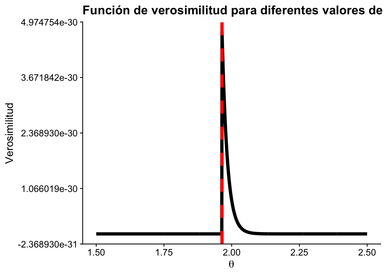 Para verificar que \(\hat\theta\) es un máximo, derivamos la log-verosimilitud con respecto a \(\theta\) dos veces y evaluamos en \(\theta = \hat\theta\):